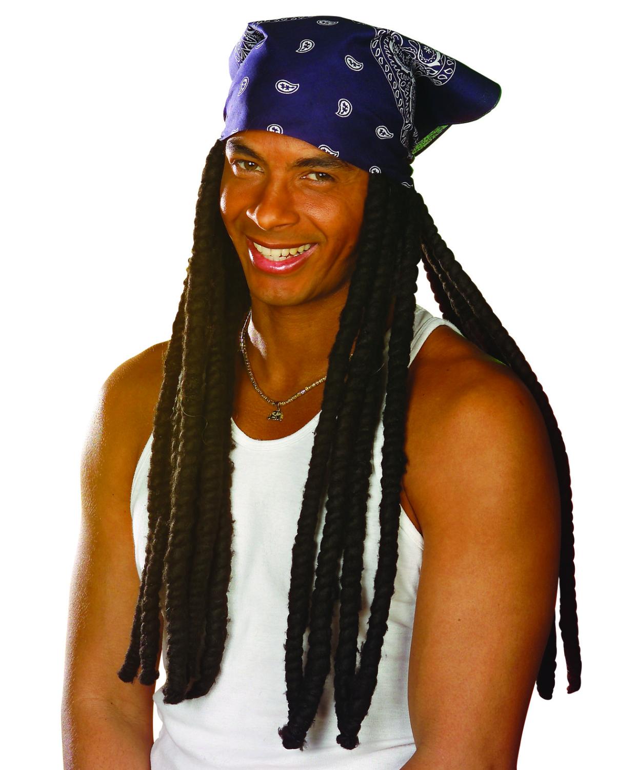 Ingen Reggae utan Bandana med Dreadlocks. Skapa din egen Reggae outfit och kom i rätt stämmning på Reggae Partyt. Bandana och Dreadslocks titter ihop.