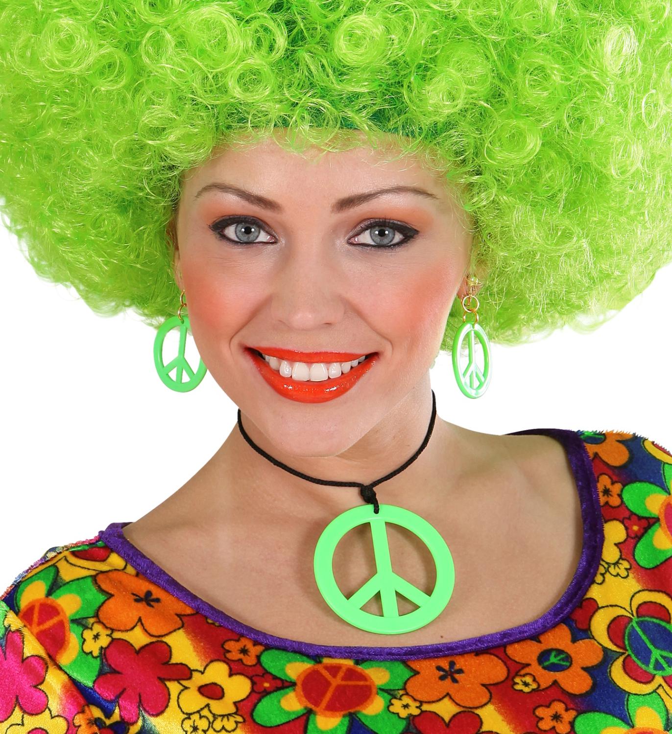 Att komma på hippiefesten utan dessa viktiga Peace symboler är som att inte ta peacefesten på allvar! Freds kittet består av ett brunt halsband med grönt peacemärke och två örhänge i samma design.