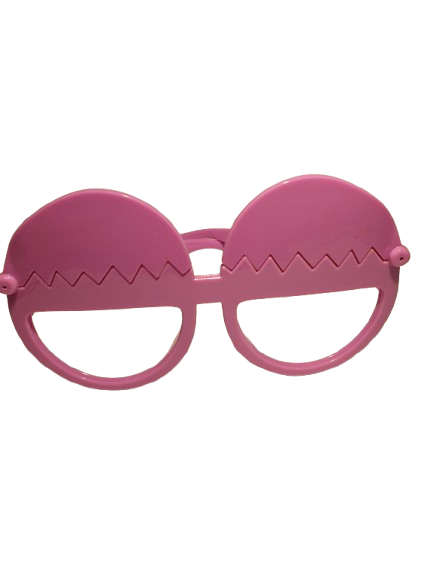 Roliga Kyckling glasögon i rosa outfit. Glasögonen har öppningsbara ögonlock för att visa två söta kycklingar. Fäller du ned ögonlocken blir kycklingarna dolda.