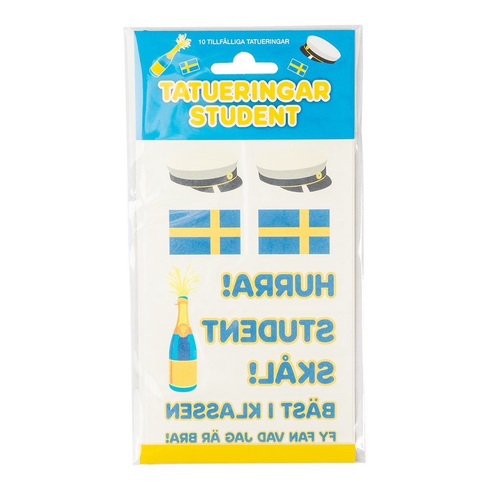 Tatueringar studenten levereras på en karta av flera tatueringar. Du applicerar tatueringarna direkt på huden med en fuktig trasa